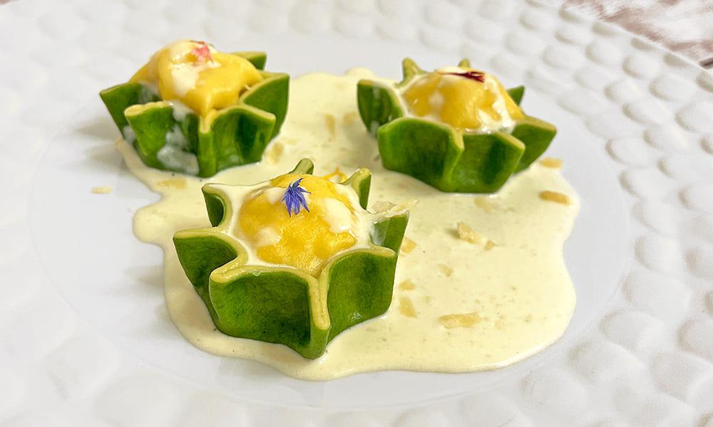 Stelle ripiene su crema di asiago