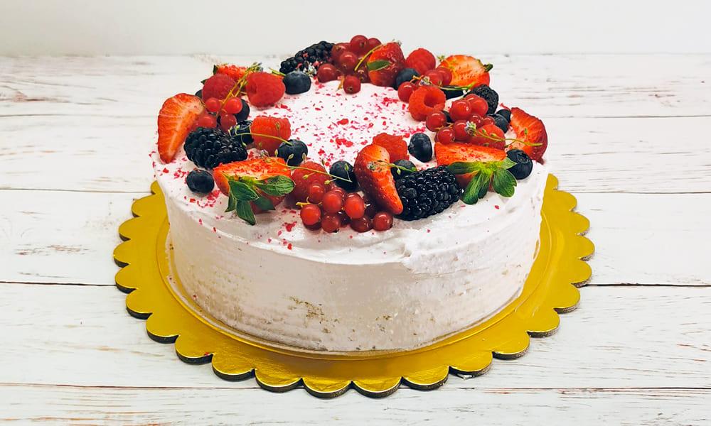 Torta a base di mousse di mascarpone e fragole molto fresca e versatile. Bella presenza scenica, ideale per occasioni speciali e per palati delicati.