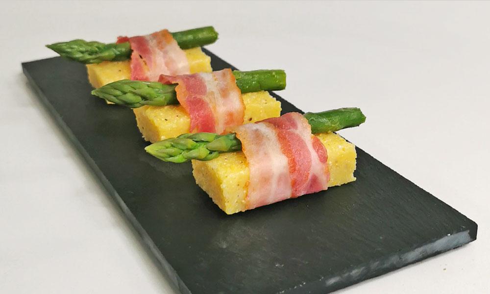 Antipasto per Pasqua cercasi? I nostri asparagi teneri in culla. Asparagi sbollentati accompagnati da polenta morbida e bacon