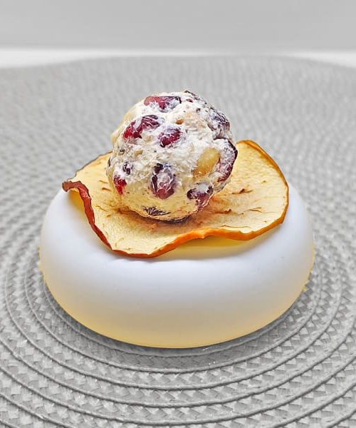 Deliziose palline di formaggio con mix frutta secca e melograno: un'esplosione di gusto al palato soprattutto se accompagnato da una bollicina.