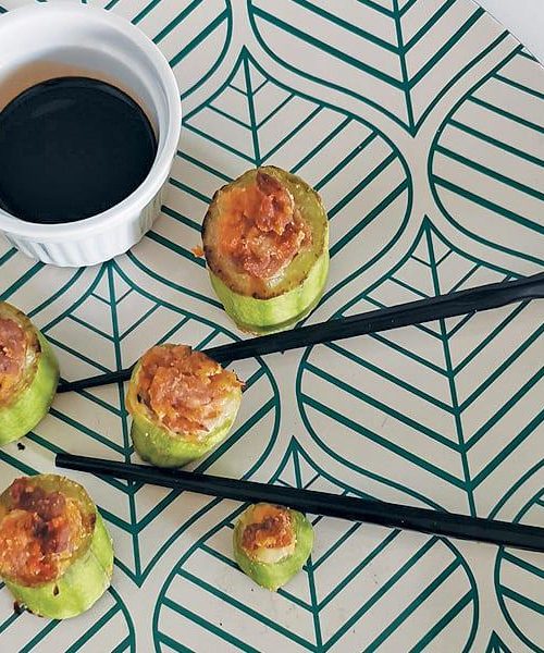 Involtini freschi, estivi, ideali per un aperitivo leggero ma gustoso a base di verdure, tonno e robiola