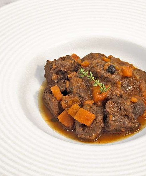 Piatto succulento dal sapore deciso che ci porta in montagna. Uno spezzatino ideale per essere servito come piatto unico abbinato ad una polenta.