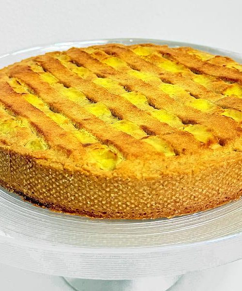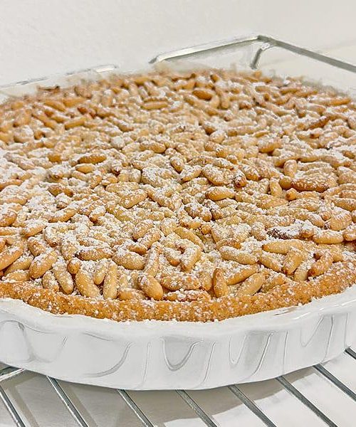 Amate la crema pasticcera alla follia? Questo è il vostro dolce. Base di pasta frolla, ripieno di crema pasticcera e pinoli. Irresistibile.