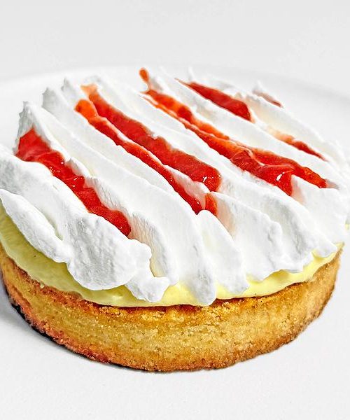 Crostata dalle consistenze particolari grazie alla frolla croccante impreziosita dal il cocco rapè e con all'interno un disco a base di meringa e farina di mandorla.