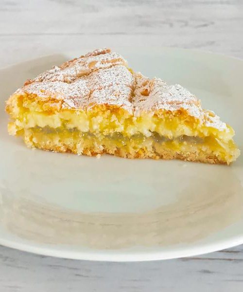 Crostata con doppia farcitura. nella nostra versione con crema pasticcera e la deliziosa confettura di zuccata, specialità siciliana. Una delizia da provare