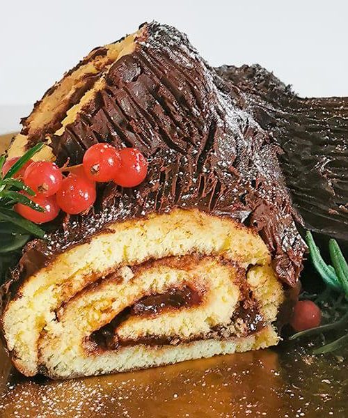 Il dolce classico per eccellenza a Natale: pasta biscotto con ripieno di cioccolato e marmellata ai lamponi. Ne vale la pena.