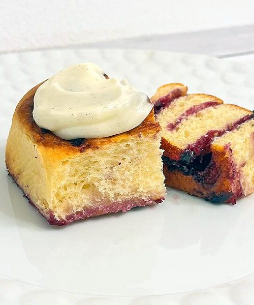 Un dolce morbido ed equilibrato, ideale per colazione o come spuntino pomeridiano. Base del Tang Zhong, farcitura fatta in casa con i mirtilli cotti