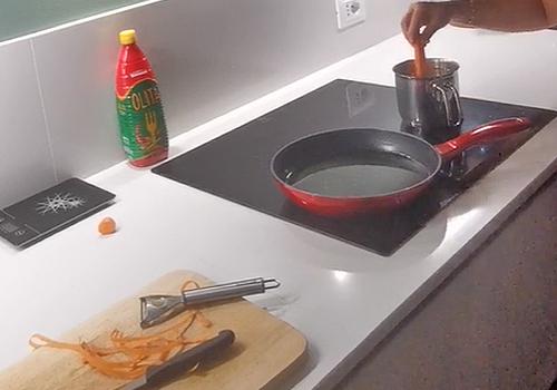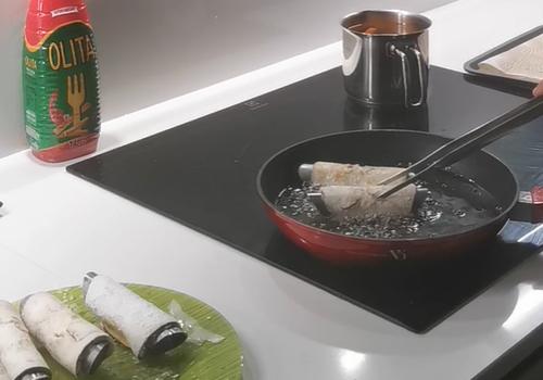 Mettiamo sul fuoco una padella con l'olio di frittura (di buona qualità, ne va della riuscita del cannolo) e portiamo a 180°, aiutiamoci con un termometro alimentare e, se ne siamo sprovvisti, usiamo uno stuzzicadenti: basta immergerlo nell'olio caldo e se fa molte bollicine siamo pronti per friggere.