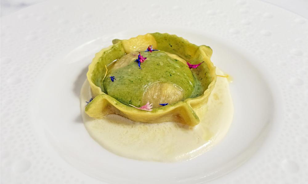 In questa ricetta, vi accompagniamo nella realizzazione di una pasta ripiena tonda utilizzando la farina di castagne che ha un gusto delicato ma presente poi nel piatto. Il tutto servito con una crema ai porri e delle chips di carota: cappelli del prete castagne e porri.