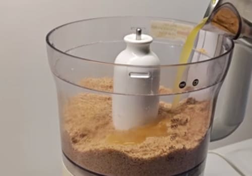 Tagliamo a tocchetti il burro, mettiamo in un pentolino, facciamo sciogliere poi lasciamo intiepidire. Mettiamo i biscotti e gli arachidi in un frullatore, frulliamo fino a ridurre il composto in polvere.