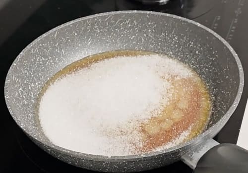 Mettiamo lo zucchero in un tegame non troppo largo e mettiamo sul fuoco medio basso senza mescolare, ci limitiamo ad agitare delicatamente il tegame per muovere la massa di zucchero. Quando sarà sciolto e avrà raggiunto un colore ambrato sarà pronto, attenzione a non bruciarlo, non deve scurirsi troppo.