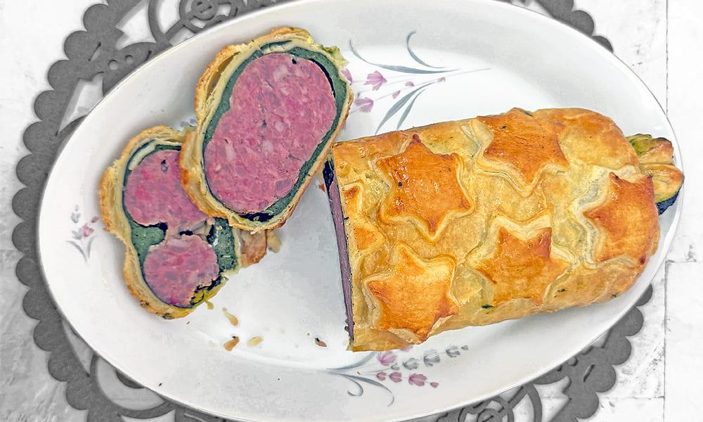 Un secondo piatto tipico delle feste di Natale e Capodanno, in questa versione in crosta di sfoglia su un letto di spinaci. Sfizioso e super goloso, cotechino in crosta.