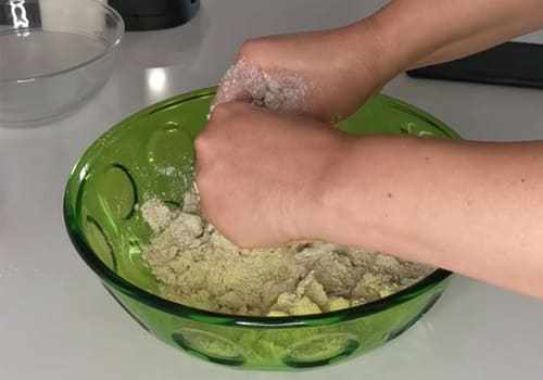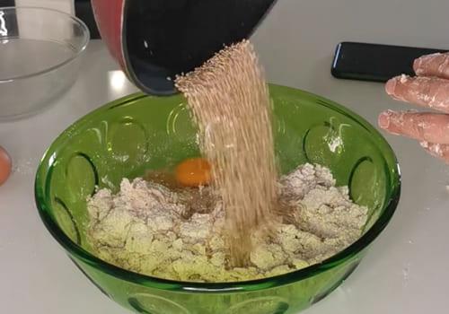 Mettiamo la farina in un recipiente, aggiungiamo il burro freddo a cubetti e lavoriamo il tutto a mano per qualche minuto finché non otteniamo un composto sbriciolato. Aggiungiamo l’uovo e ii semi di sesamo. Continuiamo ad amalgamare gli ingredienti fino a ricavare una palla omogenea. Copriamo con la pellicola e lasciamola riposare in frigorifero per almeno 1h.