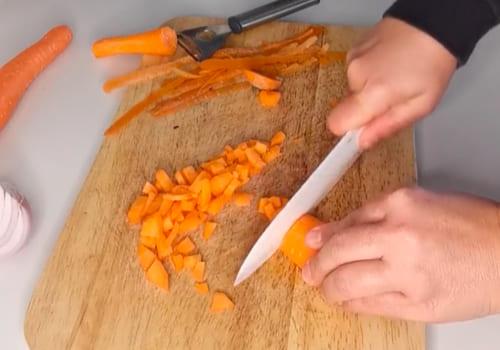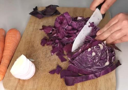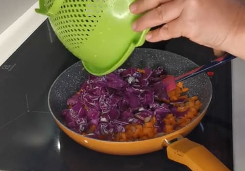 Laviamo il cavolo e tagliamolo a listarelle sottili. Tagliamo a tocchetti le carote precedentemente lavate e pelate. A questo punto facciamo appassire la cipolla in padella con l’olio d’oliva e poi aggiungiamo carote e cavolo. Cuociamo finché non saranno teneri, lasciamo raffreddare.