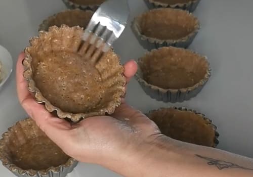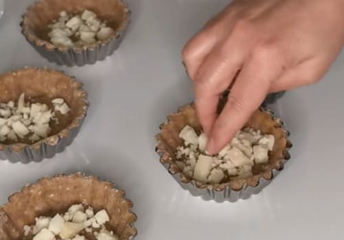 Stendiamo la frolla in uno strato sottile (2-3 mm), con un coppa pasta della misura delle nostre formine ricaviamo un disco e posizioniamo ogni disco sopra ogni stampo precedentemente imburrato e infarinato. Bucherelliamo il fondo con la forchetta. Prendiamo il formaggio, sminuzziamolo e inseriamolo negli stampi. Aggiungiamo le verdure (cavolo e carote) e finite con un pizzico di semi di sesamo.