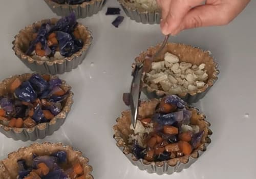In questa ricetta vi presentiamo la nostra crostatina: una base di pasta frolla salata integrale e un ripieno sfizioso di verdure invernali e formaggio. Un antipasto friabile, sfizioso e semplice da preparare. Un altro modo per utilizzare il cavolo cappuccio viola, tipico della stagione invernale.