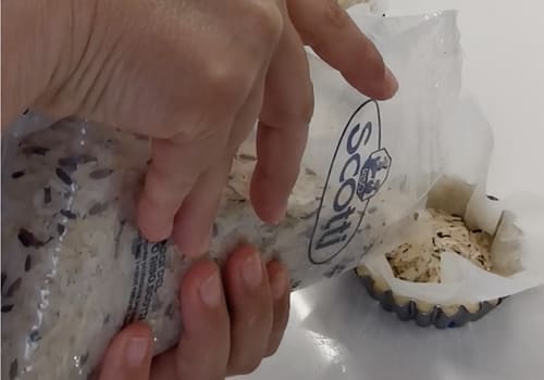 Bucherelliamo la base con i rembi di una forchetta e poi mettiamoci sopra un quadrato di carta forno e riempire con riso o legumi secchi. Inforniamo in forno statico a 180° per 35 minuti. Sono pronte quando hanno raggiunto una leggera doratura.