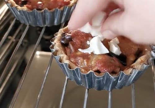 Un grande must della cucina mediterranea presentato in monoporzione, ideale per un antipasto o aperitivo sfizioso: crostatine di melanzane alla parmigiana.