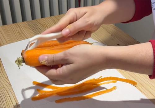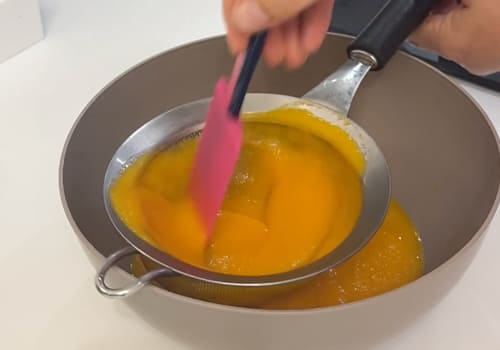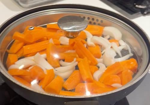 Laviamo e speliamo le carote. Tagliamole a tocchetti e mettiamole insieme alla cipolla tagliata a tocchetti in una padella con sale, acqua e olio. Copriamo con il coperchio e facciamo cuocere a fiamma bassa fino a che le carote non saranno morbide. A questo punto trasferiamo il tutto nel bicchiere del mixer e frulliamo. Passiamo poi la crema in un colino a maglie strette per setaciarla e sposiamola in una padella: il sugo di carote è pronto.