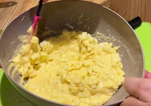 Mettiamo in una ciotola capiente la farina, il lievito e grattugiamo dentro la scorza di metà limone. Aggiungiamo zucchero, panna fredda da frigo e l’uovo. Iniziamo a impastare con una frusta: il composto risulterà fisso: a questo punto aggiungiamo mezzo bicchiere d’acqua. Avrete un composto che sembrerà una pastella, la consistenza di una crema. Ora versiamoci dentro i cubettini di mela e l’uvetta prima strizzata. Amalgamiamo gli ingredienti con la marisa e siamo pronti per friggere.