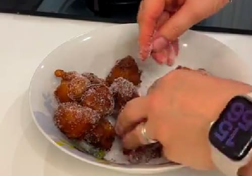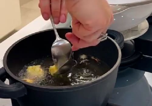 In un tegame posizioniamo dentro l’olio di frittura: facciamolo arrivare a 170 gradi e con l’aiuto di due cucchiai iniziamo a versare dentro piccole palline/porzioni di impasto. Fate attenzione a non metterne troppe in contemporanea perché altrimenti si abbassa troppo la temperatura dell’olio. Facciamo friggere le nostre frittelle e giriamole affinché ogni lato sia di un colore bello abbronzato / dorato. Scoliamole prima in un scolapasta con un piattino sotto e poi in un piatto con carta assorbente. Terminiamole facendole rotolare nello zucchero semolato quando sono ancora calde e serviamole.