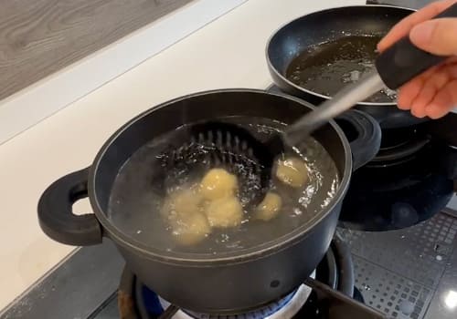 Innanzitutto laviamo le patate e immergiamole in acqua che bolle: procediamo a lessarle fino a morbidezza. Una volta cotte schiacciamole eliminando la buccia. Lasciamo raffreddare e poi aggiungiamo, l'uovo, un pizzico di sale, una grattugiata di noce moscata e la farina. Amalgamiamo per bene anche sul piano di lavoro: dovrà essere un panetto morbido e compatto.