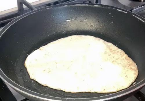 Prendiamo una padella, ungiamola con un filo d'olio e accendiamo il fuoco e dopo 10 secondi circa adagiamo dentro un disco e copriamo con il coperchio. Cuociamo 2/3 minuti per lato a fuoco medio fino a che il pane non si sarà gonfiato. Ripetiamo la procedura per tutti i dischi preparati e poi appena tiepidi tagliamoli e farciamoli con ciò che più ci piace.
