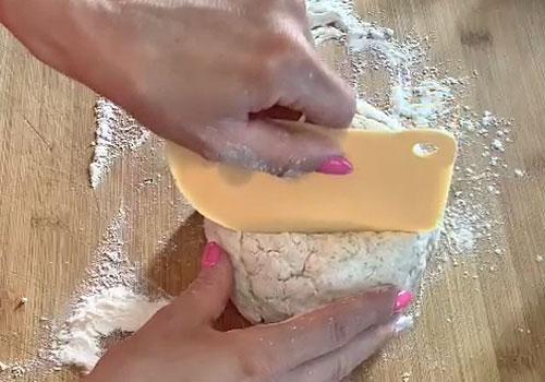 Passata l'ora riprendiamo l'impasto, dividiamolo in 4 parti e stendiamo con il mattarello ogni parte fino a formare dei piccoli dischi abbastanza sottili.