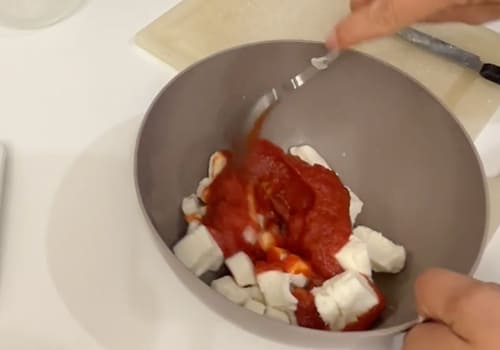Facciamo soffriggere lo scalogno con un filo d'olio in padella e poi aggiungiamo la passata e un paio di foglie di basilico fresco. Facciamo cuocere a fuoco medio fino a che non si sarà asciugata. Lasciamo raffreddare. Tagliamo la mozzarella a cubetti e una volta che il pomodoro sarà freddo, lo uniamo alla mozzarella in una ciotola, aggiungendo anche l'origano. Questo sarà il nostro ripieno.