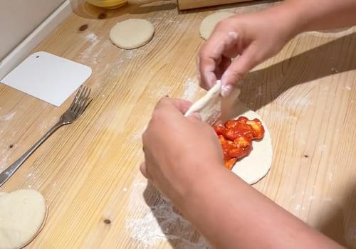 Prendiamo l'impasto lievitato, lo stendiamo con il mattarello lasciando uno spessore di 5mm circa e ricaviamo con un coppapasta da 8 o da 12 cm dei dischi. Posizioniamo al centro di ogni disco un po' di ripieno e procediamo a chiudere a mezzaluna il panzerotto. Per sigillare meglio il bordo tondo, pigiamo anche sui bordi con la forchetta in modo tale da creare anche una zigrinatura.