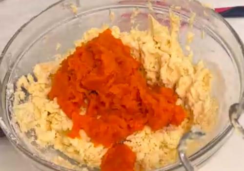 Facciamo scolare la zucca dall'acqua e poi schiacciamola prima con lo schiacciapatate e poi riduciamola a purea con la forchetta. Uniamola al composto, continuando a impastare gli ingredienti con il frullino. Per ultimi uniamo l'olio e lo yogurt. Amalgamiamo per qualche minuto, aggiungiamo la granella di nocciole, continuiamo ad amalgamare e il composto è pronto.