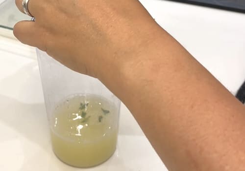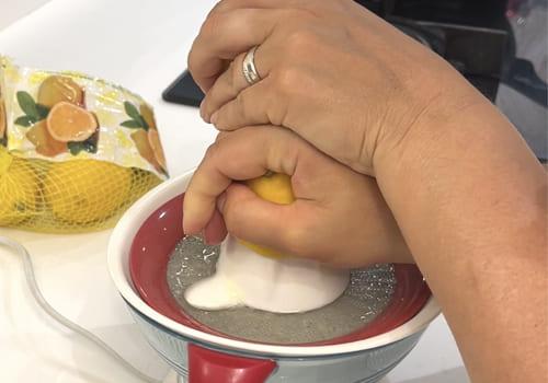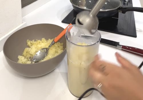 Portiamo a bollore una pentola d'acqua e mettiamo dentro le patate a lessare. Una volta cotte, facciamole raffreddare e poi schiacciamole per ricavarne la polpa e eliminare la buccia. Ricaviamo il succo dai limoni. Uniamolo nel bicchiere del mixer con un paio di foglioline di menta piccole, zucchero e 8 cucchiai di patate lesse. Prendiamo l'acqua e la mettiamo nella padella dove abbiamo fatto rosolare il pollo, facciamola unire con i sughi rimasti e aggiungiamola nel bicchiere del mixer. Frulliamo poi fino ad ottenere un composto liscio e omogeneo, sembra una crema corposa non liquida. Assaggiamo e aggiungiamo un pizzico di sale.