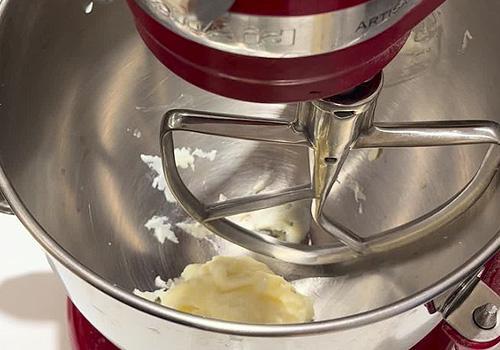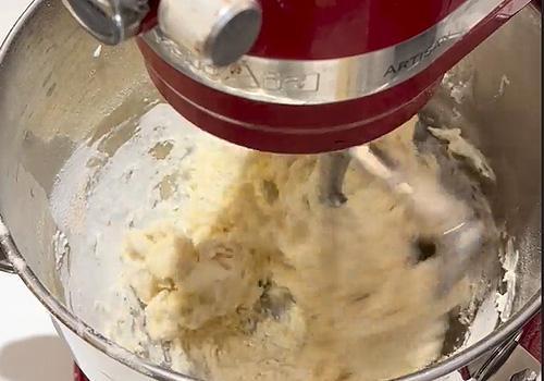 Aggiungiamo il burro a cubetti poco per volta: aggiungiamo un cubetto appena quello precedente è stato inglobato nell'impasto. A questo punto versiamo l'impasto in una ciotola, copriamo con la pellicola e lasciamo lievitare a 30 gradi di temperatura costante per 2h30min. L'impasto deve almeno raddoppiare di volume.