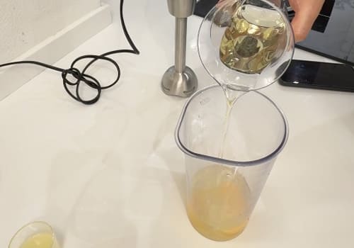 Tritiamo i capperi a coltello. Nel bicchiere del mixer uniamo tutti gli ingredienti della maionese tranne i capperi. Iniziamo a montarla azionando il frullatore ad immersione a massima velocità tenendolo fermo sul fondo per qualche istante e poi emulsionando con un movimento veloce da alto a basso fino ad ottenere un composto cremoso. Uniamo i capperi e sminuzziamoli sempre con il frullatore incorporandoli tutti. Mettiamola in sac a poche per decorare poi la terrina di porro.