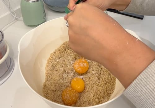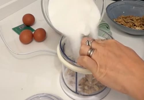Sgusciamo le noci e raccogliamole insieme allo zucchero nel bicchiere del mixer. Tritiamo tutto insieme a massima velocità: si formerà una specie di farina. Spostiamo il tutto in una ciotola e dentro versiamo 4 tuorli, la bustina di vanillina e un pizzico di sale. In un'altra ciotola raccogliamo i 4 albumi e montiamoli a neve.