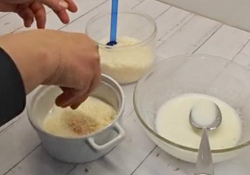Separiamo il tuorlo dall'albume. Il tuorlo lo mettiamo nella cocotte. Montiamo l'albume con le fruste elettriche fino a quando sarà schiumato appena. A questo punto aggiungiamo panna, sale e pepe. Giriamo con la frusta, poi versiamo in cocotte fino a coprire il tuorlo. Aggiungiamo il parmigiano grattugiato.